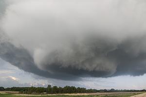 A circular wall cloud moments before dropping a huge tornado in Bennington, Kansas in 2016